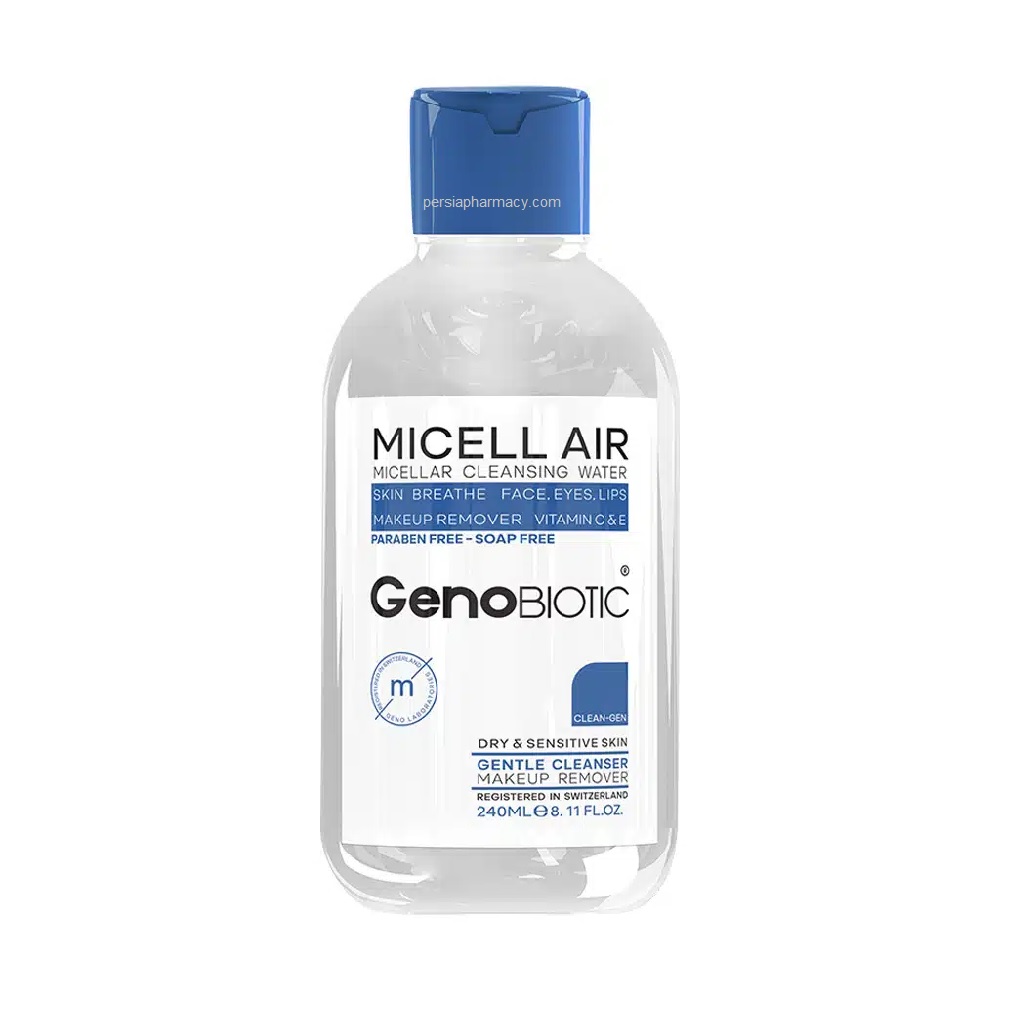 میسلار واتر پوست خشک و حساس ژنوبایوتیک مناسب پاکسازی صورت، لب و دور چشم از آرایش و آلودگیهای روزانه است. این محلول پاک کننده آرایش با فرمولاسیون ملایم، فاقد مواد صابونی، پارابن و الکل بوده و ضمن جلوگیری از خشکی پوست، با خاصیت ضدالتهابی به کاهش قرمزی و حساسیت کمک میکند.